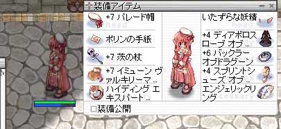 RO【ただの日記編】 2010/01/11 あれ…こんなつよかったッケw くるくるーって散歩してたら先輩を発見したので、お誘いしてみたら狩りに連れていってもらいましたっ! あれ…こんなに強かったッケ。 5桁出てるとかビビッタw なんか先輩と狩りに行くと色々新しいものを見つけられるので結構楽しかったりするネ。 そう思うと自分の狩り方とか単調すぎだったw 攻めるのより、やっぱり支援の仕方を色々考えるほうが好きかなー! 水Dローブ作るのはもったいないって事で、エキスパ2個とパレードと茨で行きましたけど、結構LA打てるもんですねー。 なかなか楽しかったっ! あーD服全部揃えたいなぁ…。