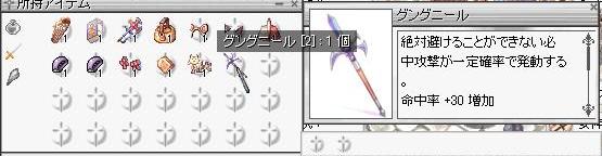 RO【ただの日記編】 2009/05/03 衝動買いってやつだ なんか…ちょっと安かったんで… 買っちゃいましたてへほしみ 単純に命中が+30あがるので、マミー2枚挿したらQAパイクと命中10差の武器になります。 1枚ハワードにすれば同じですけどねっ でもATKが高い。最低必中底上げが出来るという点でいい武器ですね。 LKになるとコンセである程度HIT上げれるので、これほどHITが欲しい時ってないんですけどもーなんていうか率直に言うとミストレス用ですね。 んまーQAパイクも持っていないことですし?多少高いですがいいかなぁーとか思っちゃったり! 今がクジでs無グングが量産されてSEされた品っぽいのがちょっとずつ出回っていたりしますが、SE計算機で叩くとそんな値段では作れないぜ…ってくらいお得なんで、運任せでやるより買う方が…。 でもでもね、どっちみち数ヶ月くらい後のクジにはsグングがB賞あたりに入るんでしょう…?わかってるんですよ…。