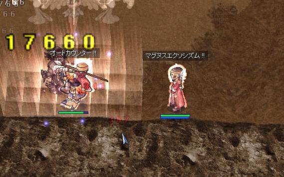RO【ただの日記編】 2009/05/01 盾なんていr…ん?だれか来たようだ 前にHIME+LKでのペア狭間をお試ししてみましたが、ひょっとして全部LK側で倒せるんじゃね!? とかおもって バーサク狩りしてみました。 (画像のLKの体力が無いのはプリ側で見ているから) 前のやり方だと、どうしても精霊が面倒なんですよねー。 精霊だけブラッディイートでバーサクするのもありなんですが、終了時にリログ→HPSPが無いっていうのがネックなので、それなら全部バーサクにしたらよくねっ!?みたいな。 ということで装備は適当にかき集めただけなので 村正 ヒュッケ耳 クリリン×2 あとはいつもの装備 コンセ5 ツーハンドクイッケン10 オートバーサク バーサク 結果 一応全部倒せた。 が…1匹倒してリログ1匹倒してリログなので、前のやり方の方が現実的。 これがパリィ10とか持ってるならちょっと話は違うのかもしれないけど、やっぱり盾ないのがワンミスすると痛すぎた…。 しかも天使釣ってくる時にVIT100じゃないんで呪われるし!盾ないし! 動画でもあった片手ならまだありかな?ワンハンドクイッケンも使えばまだ現実的かもしれなーい。