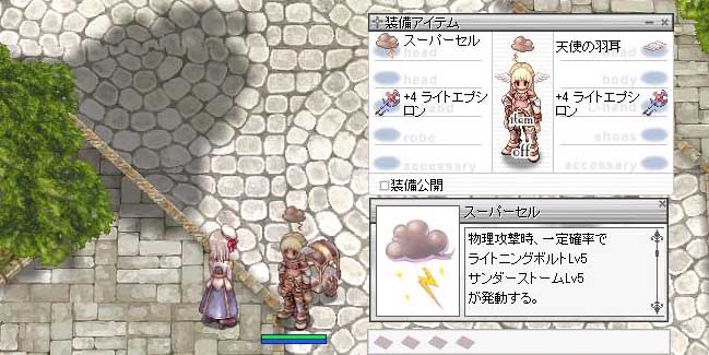 RO【ただの日記編】 2010/11/21 ぼーーん 昨日の話 ccbが 爆破した。 なにがおこったかわからねーと思うがうんたらかんたら スーパーセル買取できた。 予定額より少し高めで妥協したけど、自分でリアルマネー使って買いたくなかったしな…。 GETしたSS撮ろうと思って横に移動してたら、テラ可愛いABさんに速度もらた。 よくみたら永遠のうんたら才のsmj様だった。 買取してる時にギルチャでよしおと話してたので、smj様発見情報を伝えたら モンスターボールを投げに来た。 げっとーだぜーって事で、地デリcを出したというレア運垂れ流しのccbにあやかろうとと思い合流して4人でゲフェニアに行きましたとさってのが最初のSSだった。 やっと植木が4になった。 3だと出したものの自分のSPキツイわらただったけど、4になると結構回復出来るようになった。 植木出してる間に支援掛けなおして、使った分のアンシラ補充できた。 早く5にしたい。 まとめて書く。 すーぱーせる使ってみた。 発動率もわかんないから不安だったので、水MAPって事で最初アノリアン行ったのだけど、発動しすぎわらただったので氷Dに来てみた。 やばい、強すぎた。 発動しすぎ、ダメージでかすぎ。 武器は+7茨と+7古代樹持っていってたけど、多分古代の方が強かった。 強い時で5k前後のダメージが出る。 弱い時は3k切るけどな!! ぐりぽん帽持っていってたけど、なかなか付与してくれないし、元々私の子はMATK部分のデュプレと、魔法ダメージが主力なので属性とかそんなにどうでも良かったのと、スーパーセル発動率がやばいのでグリポン発動するの狙うよりこのままの方が効率よさそうだったからつけるのやめた。 これ、LBもTSも無い自分でこんなんだから取得してたら本気でやばそう。 よしおが多分高レベルLBとTS持ちのノビ杖持ったスパノビが狩ってたのが強そうだったって言ってた。 そういえばスパノビも恩恵でかいんだなぁー。 これさ、育成段階のセージも使えるよね? だって、LBとTS10取得してれば高確率で10が発動するんだよ? 2PCで魂うはおkの人だと知らんが、1PCの人だとFCASはレベル3までしか発動しないよね?確か。 それが10発動する様になるんだったら使えるんじゃねー? INT>AGI>DEXあたりの殴り廃WIZ、殴り魚さんとか面白そうだネ。 JT10も取得して、ウインドゴーストカードとか付けちゃったら水属性相手には俺最強ですか? あ、んでスーパーセルが強すぎたのでウサギ魔術帽売った。 あれは不具合なのかなんなのか分からないからなー3ボルトしか出ないの。 買った値段と同じく4Mで露店ならべた瞬間売れた。桁間違えたかと思った。 あれってセブンなんたらかんたらで半額セールしてたと思ったけど。 スーパーセル買うか悩んでて、一度使ってみたいって人いたら声掛けて下さい。 貸すのでー。 恐らく放置露店ばっかしてるから、メカニックにでもwis残しといてくれたら渡しまーす。