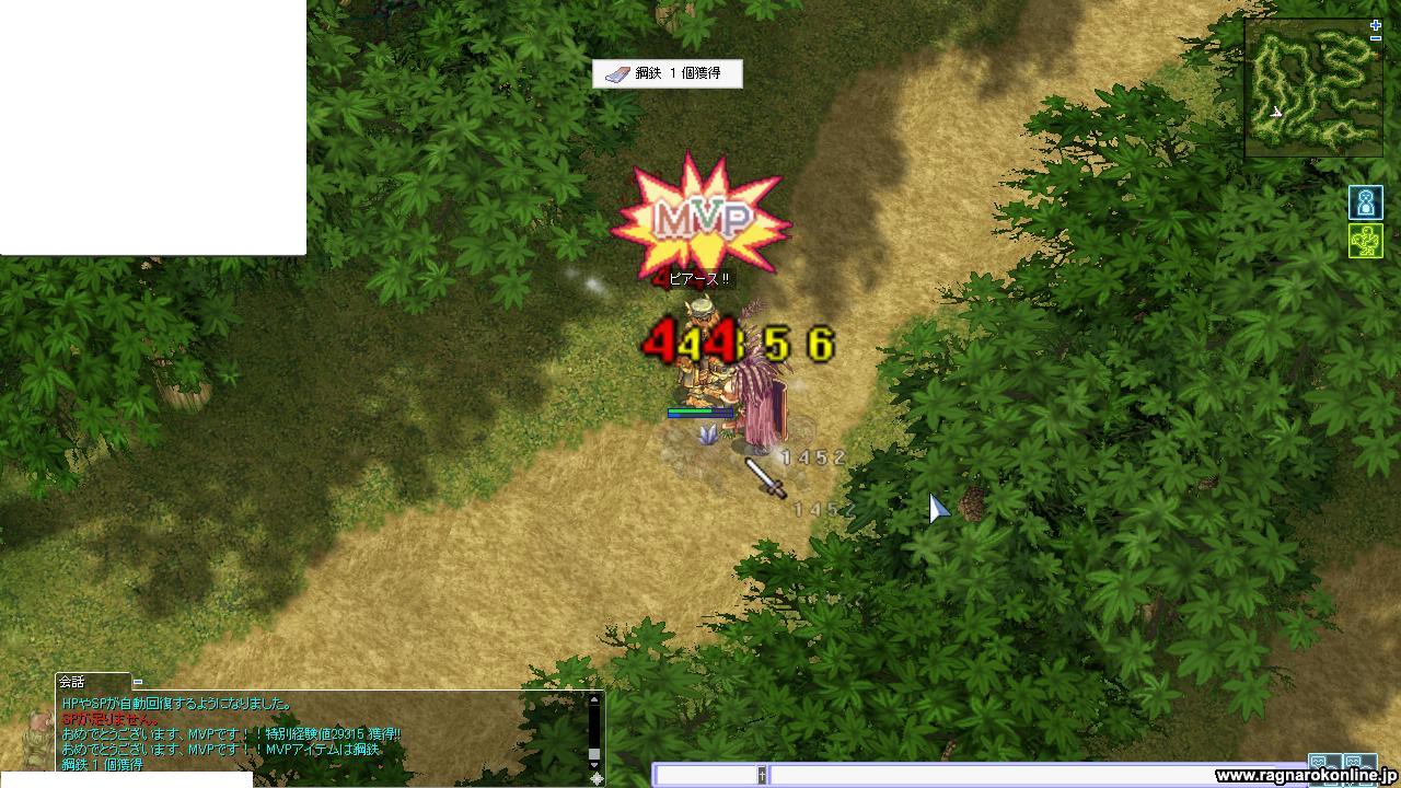 RO【ただの日記編】 2009/02/03 人気すぎた 今日はちょっとメンテ後すぐにログイン出来そうな予定だったので、メンテ前に用意してタオ様のところへ配置しておいたのだけどメンテ終わったのが40分。ログインできたのが47分。すでに終了してた…。 パラ3人くらい飛び回ってた。人気すぎた。 その後ドラに行ってみたけど、やっぱり時間経ってからだから居なかった。 ハイプリが2人飛び回ってた。 ドラ様って以外と見つからなかったりする時あるので、実は居たかもしれなかった?でも終わってそうだった。 そのまま奥行ったら1発目のテレポでDOP様に遭遇した…。 倒せないので確認しただけ! 砂とHPが飛んでた。 で、諦めかけてたのだけど折角だしエドガ見に行こうとしたんだけど、LKの装備がずっと超用だったので移動するの面倒だったから超探しに西兄貴へ行ったけど終了してた。 けど、もしかして…と思って東兄貴の→の→のMAPへ行ったら 入ってすぐの所に居ました。 武器なんて買ってないので前と同じ大型パイクです。 前回と変えた部分はお金掛かるけど火コンバで廃兄貴当たらないけど、ピアース連打。ちょっと辛くなってきたら付与はずして廃兄貴をBBで処理の繰り返し。コンバを何回も使用するのでお金勿体なかったですね。 しかも今回、画像見てもらっても分かるように完全にソロで支援なしで挑んだので白Pの消費が半端なかった。 ラッシュアタックみたいなの、時々異様にダメージ受けるんだけどなんだろ? とりあえず無事に激破できました。 剣ドロップしました。何落とすのかしらなかったので、鑑定したらオーキッシュソード苦笑でした。 これくらいのやつはら支援無しでいけますね。 その後エドガ行きましたが、やっぱり居なかったです。 1時間と思ってその後ちょっと見てたんですが、調べたらエドガって2時間沸きだったw そんなに言うほど出費もしないので、ちょくちょくBOSS見回りしてみましょうかね。 一攫千金目指してね!! そういえば 無事にキャンディー届いてました^^;; ガン乙;;
