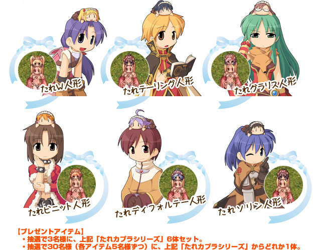 期間中に「ラグナロクオンラインGAMES」の会員になって、アンケートに答えるだけで、人気の「たれカプラシリーズ6体セット」が抽選でもらえちゃいます♪