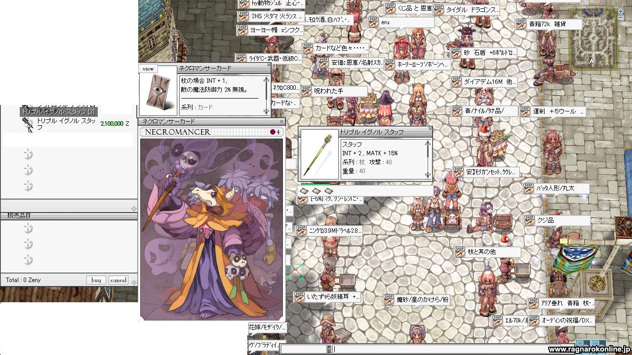 RO【ただの日記編】 2009/01/06 【メモリアルくじ】朝の状況 朝7時30分に覗いてみた内容 A賞 見てない B賞 バシリウム50M ディアリング35M sドラスレ14M 名射手のスカーフ4.5M 呪われた手13M sルシウス22M sランニング6M sブリーフ9M C賞 ダイアデム14M s疾風3.5M 銀懐中1M s神使者1M sキャスティング600k s骨兜200k ヴィダル靴700k 黄色頭巾400k ヨヨ帽200k ホーリーローブ1.5M ドラゴンウイング600k D賞 氷柱500k ソーン300k シフクロ100k マグニキャップ200k E賞みてない この時間ダイアデムの買取チャットは一つもなく、比較的値段も落ちてきた様子。 過剰狙いが出ない限り、一人1個取得すればほぼ終了なのでモバイルクジの頃には10M切る希望も見えてきたかも? バシリウムやディアリングは独占厨の協定価格を一般人がクジで出して崩壊しだしてくれてるのが時々ある。 けどまだ高いね…。 大体既存の人気装備は値段が落ち着いて来た感じ。 キャスティングが意外となくなってる露店有り。過剰してでも使うのかな? 売れ残ってそうな感じのものは急ぎじゃなければダメ元で安値で買取だすといいかも。 これは自分的買取の手段だけど、安く買いたい装備は直○ 直が不可なら音反応にしておく事。 何故なら、安く売りたい人はすぐお金が欲しい人がほとんどですよね。 あと直なのは会話するのが面倒な人とかも居るから、結構来てくれる率が高い気がする。キノセイかも。 とりあえず在席しておくのが、こういうクジやらパック系の時は勝負だと思う。 逆に相場より高く買っても欲しいなら@wisでも結構来てくれる気がする。 もし自分が売る時を考えると、@wisとかいつ返事来るかわからないし、自分より先に誰か連絡入れてたらこない場合もあるしとか考えるとわざわざ安く売るのに手間掛けたくないですよね?でもマイナーな商品とか大量に出回ってる品とかなら売るの面倒で書き込んじゃうかも?