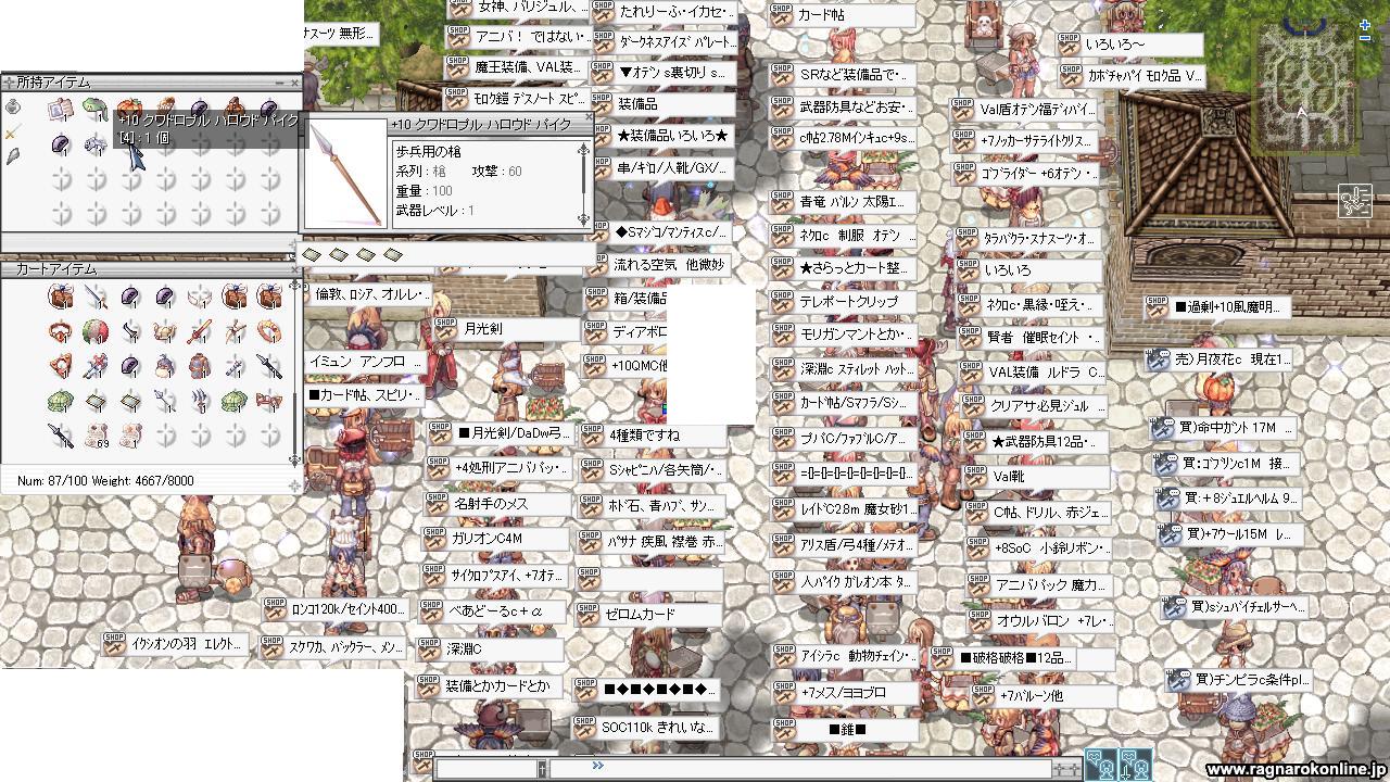 RO【ただの日記編】 2008/11/19 なるべく自分で… 揃えないといけないですよねっ! 誰かが持ってるから、いつも借りればいいや。だから買わねってやってたらダメですよね。 今お借りしてる武器が槍2本。火宝剣1本。 他に借りてたのとかもありましたけど、ずっと使いそうなものはやっぱり買わないとですし、相場くらいの値段で発見したものは買って少しずつ返して行こうかと…。 今日はこの、闇槍が1.6Mで売ってたので買いましたっ!ログインしたら返さなければ…。 大型も買わないとーって思うんですけど…流石に資金的にクルシイ…。 装備処分で色々出してるんですけど、ちょっと高めなのもあってなかなか売れてくれないですねorz やっと無形剣が売れたので少しはお金が戻ってきましたが、宿屋とアイテム代で消えそうデス…。 やっとトールの方は今で97%くらいのHITになりました。 ほとんど外す事は無くなりスムーズになってきました。 HITがある程度確保できてダメージも少しずつ増えて殲滅も早くなってる感じで、でも頭はまだ白トンガリが必要なのでDEFは皆無に近いですが、もともとSpPはDEF無視だから関係ないですし、後ははお肉食べてれば…! 安定して狩れるようになってきたので、カーサ3匹くらいは抱えながら狩れるようになりました。白トンガリなんて買ったけど使わないと思って売りにだしたけど売れ残ってたけど…役に立つ時がくるとは…! 本当は特化武器とかあれば良いとは思うんですよね。でもお金ないから節約節約っ! スノウアー2個でアイスにしたら凄いスムーズにいけるとは思うんですが、補給は多いですが化け餌で問題なく狩れるので今の所は節約って感じで我慢してます。 オーラ近くになると気持ちは変わっているかもしれません…。 アカデミーが外れたLV80から来てますが、その頃は1匹で1%くらい増える感じなので100匹倒してレベルUPって感じでした。人がソコソコな時は共闘も結構入ってるのが居たりしてオイシイ時もありますね! そういえばこんなサイトみつけました。 敵AI別解説 ってやつです。 ttp://common.ragna.info/index.php?%C5%A8AI%CA%CC%B2%F2%C0%E2
