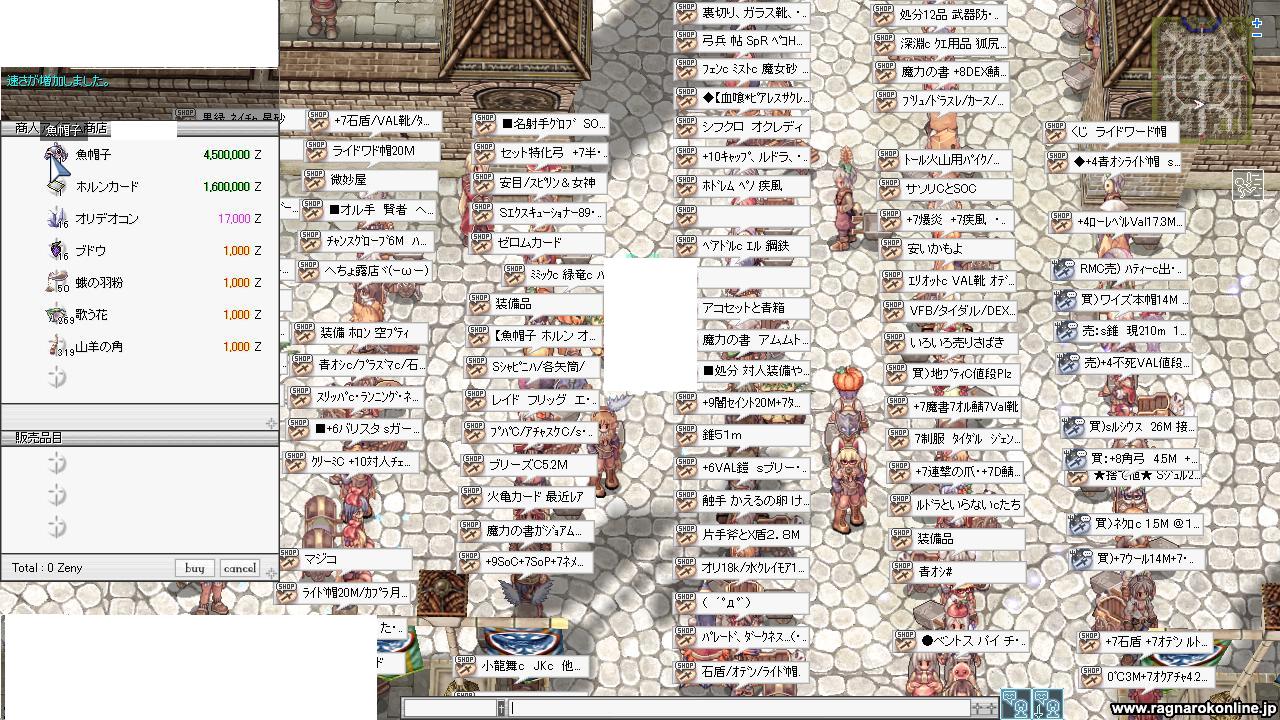 RO【ただの日記編】 2008/11/07 最近スイマーがひどすぎる こないだ買取してたらこんなの露店でみたよー。 これもオニギリみたいに箱とか枝MOB限定?どうなんだろ。調べてもない… HP10%も回復して重量1とか…アロエ葉くらい並に供給が出来るアイテムだったら凄かったのになー。 これも%だから致命的傷とか関係なしのはずだし。 そういえばお魚帽子が先日4.9Mやらで見ましたが、もう時期すぎたし安売りはないかなーなんて思って買うか悩んで結局やめたんですが、4.5Mで売ってた! けど今回も買えなかった…。 いやぁー…見た目的にはカワイイし、見た目装備的にも考えればありだと思うんですよ。でも自分的には狩りで使おうと思っていた部分が大きくて、発動率が1%もないって検証動画でされてる人が居たのでやめとこうかなぁーなんて。 確かに、付与コンバ使わずにしての狩りだったら付与されたらラッキータイム!的にまったりできるかもしれないんですけど、今ちょっと次の目標金額までお金溜めようと思ってるので大きい買い物が…。 あ、そういえば昨日寝る前に探しものがあったので露店1周して寝たんですが、キャラチェンジして1分くらいしたら知らない人からwisが来た。 なんだろ…?って思って返事したら、「一昨日にだしてた商品まだ売れてませんか?」って事だった…。 チョット前にも1回こういうwisあったけど…正直…あの…なんでも…ない…です。 多分某サイトで履歴見てwisしてきてるんだろうけど…。 あとあれあれ…露店でずっと「○○c○Mです!安いです!交渉可!交渉可!」とか連呼してる人が前にいた…お陰でその下で露店出してた人の欲しくて買おうと思ったら露店閉じて移動されちゃったよ…。 道歩きながら「誰でもいいので○○ウッテ~;;;」って言い歩いてる人もいた…。 なんというか…両方気持ちは分かるけど、ちょっと怖かった…。