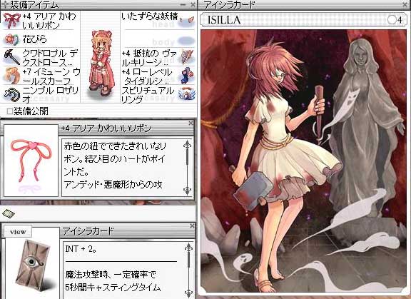 RO【ただの日記編】 2008/10/13 荒業にでました。 アイシラ1枚を、かわいいリボンと交換し、残り1枚のアイシラを挿して2枚消費でアリアかわいいリボンを作成という荒業にでました。 寝る前に露店みたら、かわリボが6.4Mで売ってて損した感があったのは内緒だ。 いやーギルドの人がアイシラ6.9Mで出してて、しかも良く見える位置で看板にも大きく書いてたのに結構な時間売れ残ってたし、これはやばいかなぁーと思ったんですよね。んで、かわリボは8Mくらいで釣ってる人はいるものの、だいたい7M前後500k辺りが相場っぽかったんで、それなら交換してもらえたらいいかなぁーと。 多分このままアイシラ持ってても値下がりそうだし…と思いまして。 で、なんでかわリボに挿したかなんですが、最初はムナックに挿そうと思ったんですよ。 名無し2、3Fソロでも使えそうだし、PTの時は今もうアコセじゃないのに本挿ムナック使ってるので、それもアイシラに変えたら気持ち出たらラッキーだって感じで。 でも考えたら、名無し以外で被ってたらはずかしいですよね。 かわリボならモロクソロする時も使えますしって思いましてー。 あと、一番の決定打はエンドレスタワーと同時に実装される予定のもう一つのメモリアルダンジョン『封印された神殿』の方なんですよね。 エンシェントミミックが10匹ほど居ますが、大量の不死悪魔で構成されるMAP。しかも、エンドレスタワーと違い1週間のクールタイムも無し。バフォメットを封印したら12時間のクールタイム。そしてダンジョンは他PTと一緒にならない。2名以上で入場可能って感じなんです。 そしてここでは、ADしか居ないMOBとかも混じってるんです…。 問題はアスムとSWが使えない事ですね。 とりあえず、プリの場合はMEを撃つ時=不死悪魔。ですし、WIZと違って自分も前にでたり、後衛のタゲはずしたりしないとなので耐久値も求められます。後はやはり、MEっていうとソロも結構多くなってしまうので、INT+1やバルーンとかに挿すより耐性あるのに挿した方がいいかなと思いました。 正直なところ、やはり名無しでは気持ち出るカナぁーって程度でした。横でHWさんがいっぱい発動してるのを見るとやはりMEでは発動しにくいのは見てとれました。 前に借りてモロク行きましたが、再び実験してきました。前より結構でた雰囲気。ソロにはあったら気持ち楽になるかもですねー。ボスとかなら常時SWやMEを張るわけなんで、再詠唱が早くて楽チンでした。 微妙かなーって思いましたが、ありっちゃありな装備だと感じたので満足。 でも何だかんだで14M相当の無駄使いになってしまった…orz 無駄にならないように使いこんであげないとですねっ