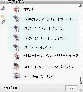 RO【ただの日記編】 2008/09/17 そろいました+7ハートブレイかー念願! +7型特化ハトブレがやっと3本そろいました。 一番どこで使うの?系の小型を作るのに費用が莫大にかかりました…。 無くてもよかったんだよ?でも全サイズないと不安になるじゃないですか…。 鎧も同じく、無属性のプパorペコ、火、水、風、闇と6個は使わないかもしれないのに全部そろえますね。 プリ用セイント、WS用メテオ、AX用シフクロと全種類用意してあります。 ところで何もささってない+7ハトブレが1本あります。 ノリでもう1本…。挿すカードは決まってない。 ソルスケ1本で汎用ってしてる人も居るみたいだけど、WSスレとかでもやっちゃった系にされてるロマン武器なので作る気は無い。 超DEFのMOBに対しても型特化ブレイカーがの方が強く、違う型が入り混じってても秒間ダメージは誤差になるので微妙。使う場所が限定されてるなら十七挿すのはありかもしれないけど、それでも誤差。 とりあえず何か良いカードあってから揃えるのは面倒だし、置いておこうって感じです。 そういえば今日トール3へ行きましたけど、やっぱりホドレムリン欲しいかなぁーって感じ。 最近の狩場は安定させるにはLKか献身が必須なので、自分が最前衛に立つわけでないので横沸きや飛び道具などが喰らう位。支援に専念をしないといけないし、自分が受け持つ場合は急な場合が多いので付け替えを失敗する場合もあるのであると便利だと思った。 逆に自分が前にでる狩場というと、旧狩場なので死ぬほど痛くもないし大量に集めてドゴーン狩りなので完全回避が発生すればウマーだし使えるかもしれないですね。 属性耐性のあるVALに挿そうと思ってましたが、実際のところ闇不死は闇服着てることが多いと思うので無価値に近い。後は火と水ですが対人はしないのでメテオストームとかトールくらいでしょうか。それだとしたら、マグニセットとか使いませんが大型耐性が付いていて処分しやすい石盾にするのがベストかもしれません。 重い重いと行っても、マグニセットを使わなく弓の移動時用しか使わない人、魔系の人でも石盾使ってる人多いですしね。