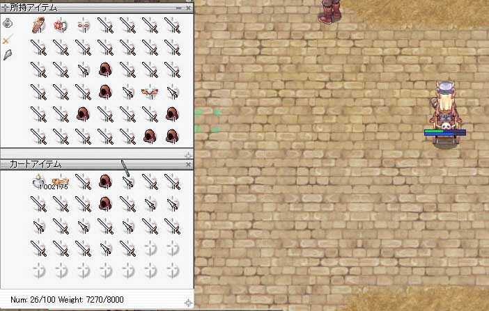 RO【ただの日記編】 2008/08/07 続きダヨーダヨー 前の記事の続き。(ゴハンで途中までだったんで… ← が1回の狩りでの拾った装備品。 そう、何故こんな数かというと、モチベ低下への鞭打ちということで、くわえた魚が6Mで売ってたんで買ってあげました。 発売当初3M→すぐ5M→今7Mと上がってきて、買い時逃しまくりで損なものでしたが、オーラへの気力持続には仕方ないことだった…。 そして、回復剤が価格効率ぶっちりぎりのお肉から価格効率最悪なお魚になったという事で、散財狩りかと思われましたが、実際何回かやってみて計算すると、だいたい2時間ワンセットとして400k~500k位の収入。 出費が300kくらいなので黒字の様子。 お肉とあんまし変わらないかも?ただ、くわえ魚の分は大出費ですけどねっ!! 使い終わった後に、値段下がってなかったら売ってしまおう…。 とりあえずもっていく消耗品は 【手持ち】 緑P15個 白P30個 イチゴ30個 ハエ300個 狂気P6個 魚1800個 水コンバーター40個 【カート】 白P100個 ハエ300個 魚2500個 滞在時間はあがったので、とりあえず万が一赤字になってもいいから頑張ろう…。 そしてこないだMSSやってたんですけど、最後までやらずに6章でとめるとゲフェンからニブルへいつでも直行できるんですね。逆にニブルからゲフェンへとも行けます。いちいちウンバラに行かないでいいし、バンジーもやらなくていいのでニブルへ良く行く方は止めておいてもいいかもしれないですね。 ちなみにココでとめてから、サインクエストの第三部とかポタなし職業でも結構楽に移動できる気がした。 そして、ケンミンも終わってやることなくなたので、SDも混んでそうだから早めにお休みしますー!