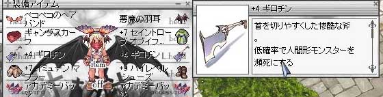 RO【ただの日記編】 2008/07/30 念願の…うわ、やめろなにをs( 今朝露店みたらよくでてる9.5Mは発見したんだ。 昨日見かけたら買おうとか言ったものの、やっぱり前にみた値段と1M以上も違うと買う気になれなかった…。 迷いながらも下の方まで見ていったら前の安いのよりちょっと高かったけど、相場くらいのがあったんで数多く出てるものじゃないし、お試しで使って気長に買った値段でおいとけば売れるかと思って買ってしまった!! 実際使ってみた感想。 これ…っぱねぇ…。 ギロチン狩りはオーラへの近道とかいって耳にしますが、そんなに聞いても使ったことある人って身近に居なかったりする(まずBS育ててる人がほとんど居ない)ので、正直あんまり期待はしてなかったんです。 シュミってみても威力は特化より劣り、結局効率的にどうなんかなーとか思ったり。 が、これは…散財狩りに抵抗があるぼくにしては画期的すぎた…。 全くSPが減らない…。聖斧も併用すれば回復剤も節約できるし、89%まで積んで(+カート8000)行けるんでこれはやばい…。 廃屋と西兄貴に行ってきました。 常時AR、WP、OTはいつも使ってましたがMP使うとSPきつかったけど、常時使用が可能になる。 付与なしで一番最初のSSの装備でだいたい900オーバーで1kに届かないくらいのダメージ。 AGIも無い自分の子にしたらCR狩りは理想なんでありがたい…がVITがない盾もてないで被弾はやばい… 昔テレクリとかハエ買ったほうがコスト的に良いとか、最近のお魚とかも元取れるのか?とかいう話があり、滞在時間とかのメリットは置いといたとして、値段的に見た場合ギロチンもどうなんだろ?とか思った。 計算してみたら、うちのサーバーの価格でいうとイチゴやお餅がだいたい5500個位の値段だった。 プリとかの緊急用でのイチゴはそんなに使わないけど、攻撃職だと一気に使ってしまうんで多分ギロチンなしのイチゴ消費量考えたら、結構すぐ元取れるんじゃないかな? 今まだ人以外からもSP取れるバグがあるみたいですから、それが治されたら使用できる狩場が減るので値段も下がっちゃうのかな?でもCR狩り=兄貴orSD5がメジャーだと思うんで、どっちみち人型だしどうなんだろ。 PR