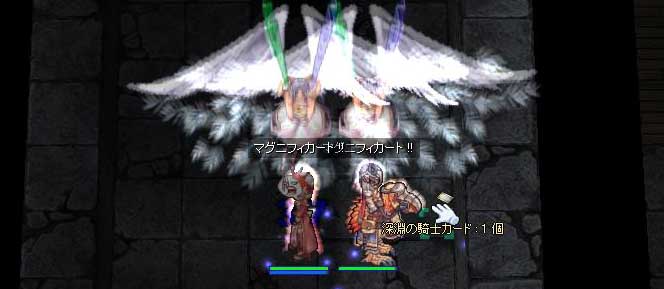 RO【ただの日記編】 2010/02/06 もう虜にちがいなかった 今日久しぶりに露店だけでもって久しぶりにログインしてみて、ちょっとccしてみて挨拶したら露店中だろうと思っていたsmj様が中身入りだった!! ので『騎士団ですか?』と言うことで連れて行ってもらったら… はじめて出た…深淵さまカード! もう深淵さまはsmjにデレデレの虜に違いなかった。 もう一枚くれ! あーほんと初めてダナー。 そして実は出だと来まったく気づいてなくて『でたよw』って言われてログみてやっと気づいたのだった。 きっと黙ってたらそのまま気づかずだった…。 しっかし今日はほんとひどかった。 自分自身でも全然やれてない感とか、なんかひっかかる感覚があったのだから、大変迷惑掛けた気がした…。 ちょっとIMを切らさないようにしようしようって頭の中にあって、そっちに気がいきすぎてすごいテンパってた…。 ので、いつもより多くMOBの間に突進していってタゲとったりとかしまくりだった!! ごめんなさいごめんなさいだった。 しかしちゃっかり深淵分の分け前は頂くわたくし!!