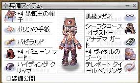RO【ただの日記編】 2010/01/28 象さんにちょっかい出してみた@にんにん また刺激を求めて↓の方へ入ったら、いきなりマンモスがいた… どんな攻撃してくるんだろ?SGとかしたっけ…? とか思いながらスイトンを出してみた。 そしたら、やれそうな気がする~♪ って感じだったので ちょっかい出してみた。 うん…途中で芋虫横沸きしてピンボールして死んだ…。 でも案外タイマンならいけそうな気もしたので調子のってやってたら5ペナくらいした。 うん。そろそろいいだろう!って思って、今更だけどマンモスの情報調べたらMHP高すぎだった…。 ダブルヒットとか無しで計算したら700発以上龍炎ぶちこまないといけない計算だった…。 先に計算してからやりなさい!!って感じで…。 ま、でもその後おとなしく→の方で狩りはじめたら、まだレベル低いので5分も経たずにペナ分取り戻したのでOK!! そして懲りずにまた、↓の方へ舞い戻ってきたら ルナカリゴが出た。 入って最初に倒したタタチョから出たので、重量オーバーで即倉庫へ戻った…。 →側はだんだん慣れてきたので、当初のようなドキドキはなく、狩り方も少しずつ変えてきております。 タタチョは3匹くらいまでいけるようになったし、芋虫とタタチョとか混合しててもそこそこ少量なら対処出来るようになりました。 ただ、2匹以上の場合重なってると空蝉で飛ぶ瞬間に被弾する場合があるので注意ですね…。 なかなかお値段維持の装備群なのでレベルあげながらお金稼げて、1発当たれば転がるスリルもあっていいです。 一番はやっぱり、今までの狩場でEXP!ってなると、だいたいアヌビスに群がってしまうので色んな職でいっぱいでしたので、人ごみ嫌いですからこういう場所はありがたいです。 あ、そういえば今の装備はこんな感じ あまりお金を掛けたくないので、ほとんど別垢にしまってた物や、他キャラからの流用です。 適当な装備でも狩りが出来るのが忍者の強みかもしれません。 あと、1PCで支援や付与がなくてもストレスなく狩れて楽しめて、趣味に走りすぎず、でもそこそこな狩りが出来て、作業ではなくっていうのが希望で選んだ忍者ですが、すごいピッタリくる感じで満足しております。 ま、一次職なので転生職とかと比べる気はないですけどね!! そこがまた必死にならなくていいので、自分なりに満足して楽しめるからいいのカモネ。