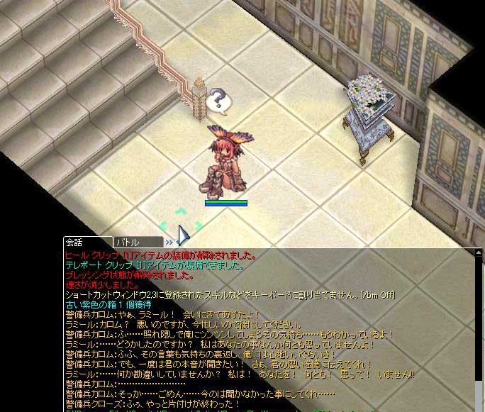 RO【ただの日記編】 2008/07/01 あさしんは…うん…がんばるこ 前に新しい武器を作ったんでーとか言ったまま、全然やってなかったので今朝やってきました。 新しい武器っていっても、高価なものでも目新しいものでもないんですけどね…。 そう、+7裏切り者です。 それでフレイアクエスト中に何か出てきたのが←の図…。 初めて聞いたこの会話…最後なんかオチがあるのかなぁーとおもって待ってたんですが、ここで終了しました。 オチなしだった!!!テラカオス… 4Fとかまだまだいけないんで、2FへGO! 何か張り切って色々持っていったものの、回復剤も一切使わないし、武器も裏切りとインバーススケイルの2本とかいう凄い手抜きになりました! すきまくりなんで、少し数いたらまとめてグリムしてもいいし、収集品もそこそこ値段高いし、高級サンダルも出るんでまぁまぁですねっ! とりあえず、これでアイシラcが実装されたら自分で取りにいけそうですねー。 値段にもよりますが、高かったらおいしくなるけど、足遅いから遠距離職でも余裕だし、必要FLEE低いから前衛系も余裕なんで、人が増えたら狩りにくくなっちゃうんで困るなぁ・・・;; なんでココ選んだかって言うと最近遊んでるのが騎士団。そこのメインがレイドとカリッツ。 レイドリック HP8,613 BASE3,410 JOB1,795 カーリッツバーグ HP19,276 BASE4,378 JOB2,750 に対して アイシラ HP8,297 BASE3,001 JOB3,001 ヴァンベルク HP9,988 BASE4,203 JOB901 ヴァンベルクはJOBちょい低い印象ですが、それを補うくらいアイシラのJOBが高い事ですね。 両方歩くの遅いし、弱いし、同じランクくらいでEXP目的ならこっちがかなり楽ですね! でも、騎士団はやっぱM単位のレアがいっぱいなんで目的が違う感じなんで、たまには行きたいです! ※ スリーパー HP8,237 BASE3,603 JOB2,144 SBr1確 色々行かずにこれやってる方が、安定して金銭も増えて、EXPも増えるのは言わない約束… だって飽きたんだもん…。 PR